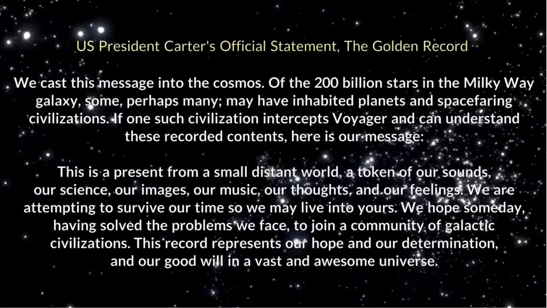 I saved the screenshot of President Jimmy Carter’s message on the Golden Record almost 43 years ago: